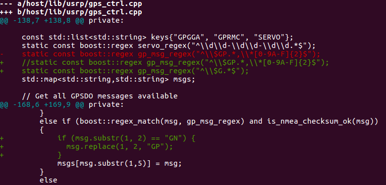 for the usrp compatible gpsdo using ublox gps module there is a problem if you want to use the gps message to fetch time and location. this is the bug in uhd source code that do not recognize ublox gps message. below show how to fix this bug.